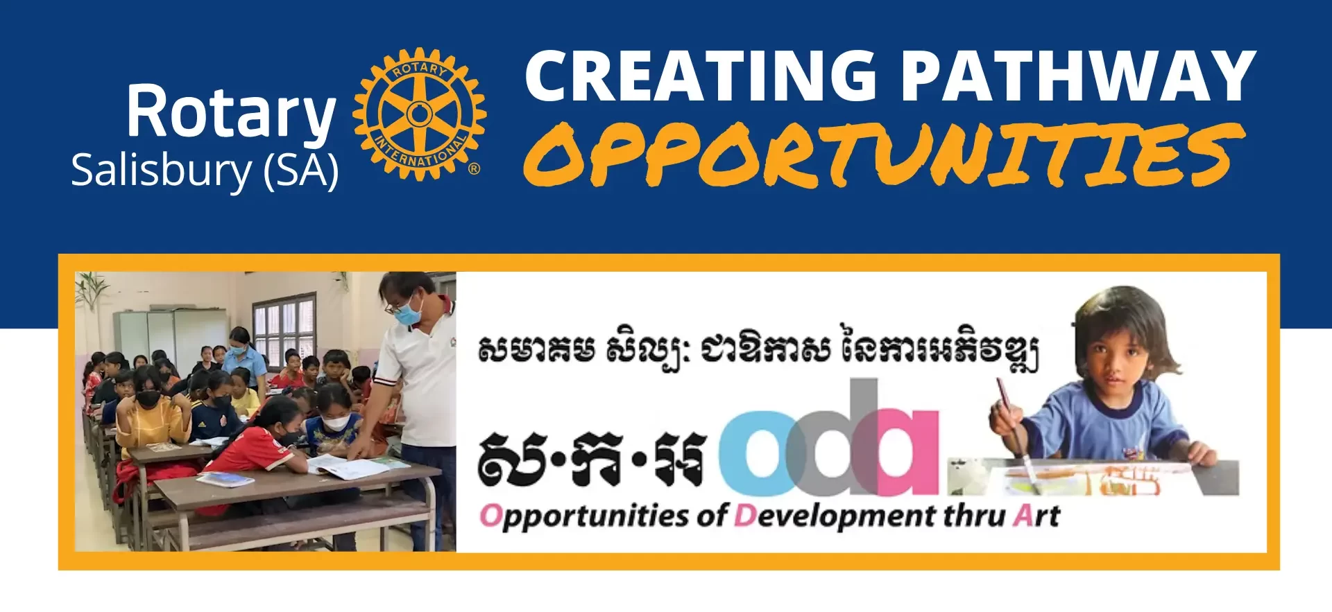 A Rotary partnership with the Cambodian NGO Opportunities for Development through Art (ODA) to provide support with after-school advanced English classes for local and remote students — giving them the opportunity to learn English as a second language.